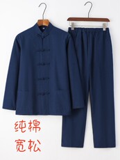 唐装男纯棉老粗布长袖套装上衣裤子两件套中国风盘扣大码中式汉服