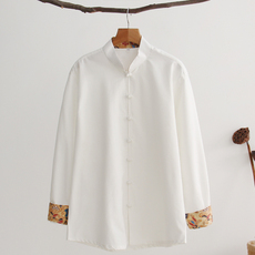 棉麻唐装男长袖上衣打底衫中国风男装汉服中式衬衣衬衫禅修居士服
