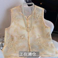 中式中国风马甲背心欧根纱复古无袖坎肩薄款重工刺绣马夹女秋冬季