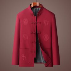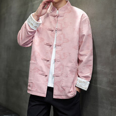 唐装男中青年长袖外套中式复古宽松立领盘扣秋冬中国风红色上衣