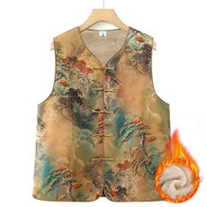 中国式气质民族风马夹中式复古马甲新中式加绒加厚印花冬季上衣