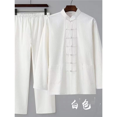 由天丨断码棉麻男装中国风长袖外套男士唐装中老年改良汉服宽松版