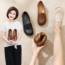 欧卡汇妈妈鞋中老年舒适单鞋工作鞋子真皮软底软面皮鞋一脚蹬女鞋
