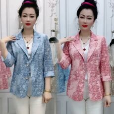 妈妈春秋时尚外套西服中老年女士新款上衣洋气国风花色休闲小西装
