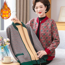 奶奶装秋冬特大码宽松加绒加厚针织外套中老年妈妈毛衣老人衣服女