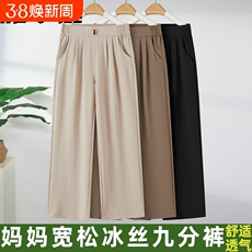 雅鹿冰丝裤高腰直筒裤中老年人妈妈裤子休闲夏季薄款修身外穿奶奶