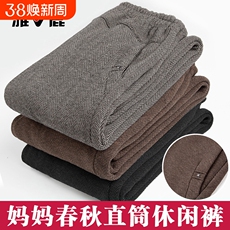 雅鹿妈妈裤子春秋宽松高腰休闲裤中老年女装冬季加绒保暖奶奶长裤