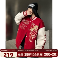 悟空有货美式重工刺绣拼接撞色棒球服外套男潮牌高街情侣翻领夹克