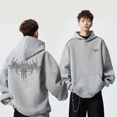 ATRY连帽卫衣男款春季潮牌美式宽松灰色重磅刺绣情侣装帽衫外套女