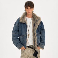 MADWITCH复古解构水洗设计感牛仔棉服男女冬季保暖座山雕毛领外套