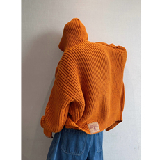dannyandzee冬季复古慵懒重磅1.5KG连帽粗棒针纽扣毛衣厚外套男