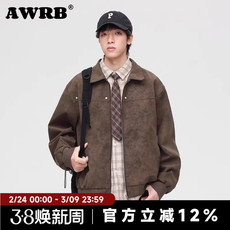 AWRB美式复古翻领皮衣男春秋季新款潮牌宽松百搭潮流夹克休闲外套