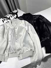 高街大牌风仿绸缎亮面排扣棒球服亮面醋酸短款飞行员夹克外套开衫