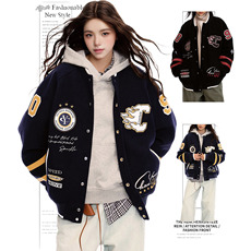墨秋JK制服山野中棒球服2025年冬季新款美式复古学院风上衣外套女