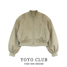 NON RESTRAIN飞行员棒球服夹克女肌理感插肩袖花苞下摆休闲短外套