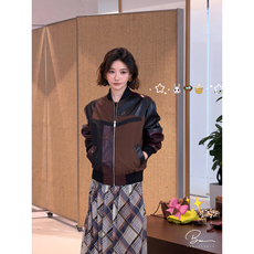 佟小白TXB “复古解构”蛋白皮pu皮质拼色拉链夹克外套棒球服皮衣