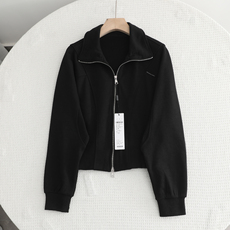 2026新款韩式休闲风黑色开衫短外套女长袖圆领百搭棒球服春秋外套