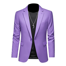 西装男2025秋季高端翻领丝绒修身西服男士休闲帅气纯色单西外套潮