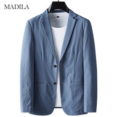 【储格】戗驳领休闲西服外套男高级感小西装双开叉麻纱纹理单西