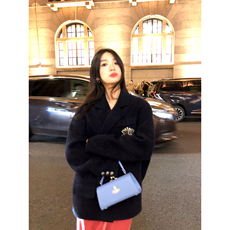 MSLAN暖冬絮语 复古两件套V领毛织披肩领双面呢大衣外套25秋冬