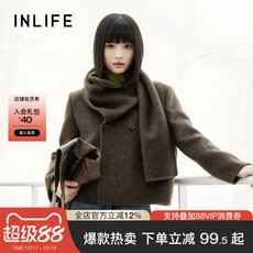 伊纳芙法式气质双面呢子大衣女冬季新款高级宽松保暖围巾毛呢外套