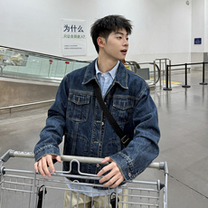 牛仔外套男款春秋季潮牌宽松高街美式翻领工装夹克男宽松潮流百搭