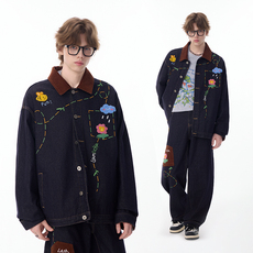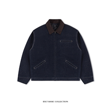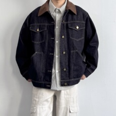 美式复古做旧洗水痞帅灯芯绒拼接牛仔上衣 改良男女底特律夹克