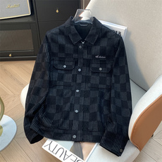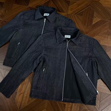 H家、余单!少量现货!黑色花纹翻领夹克植绒厚款通勤百搭外套男