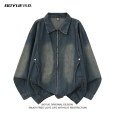 大码300斤美式复古牛仔外套男春秋宽松潮牌痞帅潮流帅气工装夹克