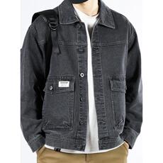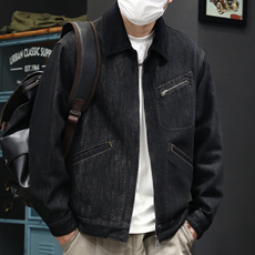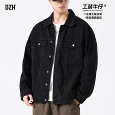 男士黑色工装牛仔外套男款秋季宽松上衣牛仔夹克衣服2026新款男装