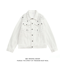 格自重工烫钻牛仔外套男女款潮牌宽松翻领夹克春季美式设计感上衣