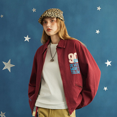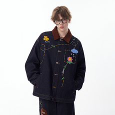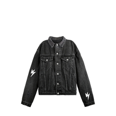 LAMLICKA复古水洗深蓝刺绣牛仔外套男春秋潮牌宽松美式翻领夹克女