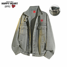 查尔斯桃心美式复古牛仔外套男款春秋季夹克男女生情侣装开衫上衣