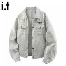 灯芯绒撞色翻领牛仔外套男士春季新款宽松刺绣休闲工装夹克男上衣