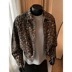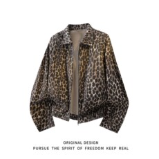 小众豹纹拉链垫肩牛仔外套男女春秋季美式高街vibe翻领短款夹克潮