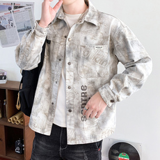 [满印提花]利郎奥莱 牛仔夹克男秋季潮流老钱风老花格子休闲外套