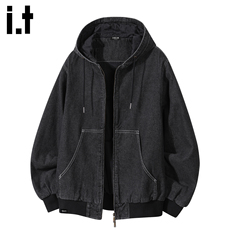 青少年水洗牛仔外套男春秋季初高中学生潮流连帽褂子宽松休闲夹克