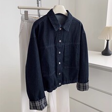 秋季男士牛仔夹克时尚层叠拼接翻领宽松牛仔外套潮91740/L2