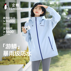 企鹅游鳞冲锋衣男女2025秋季新款户外单层夹克防风防水登山服外套