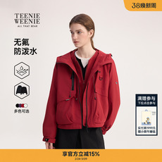 酒红色山系机能风户外冲锋夹克男款春季boxy短款廓形立领工装外套