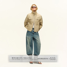 出逃赤岗西 复古卡其色廓形外套女款豹纹领口设计感工装夹克上衣