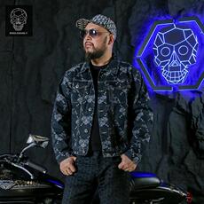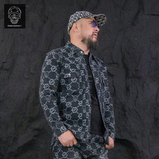 金刚铁甲骷髅头潮牌重工牛仔外套男宽松休闲夹克上衣翻领牛仔夹克