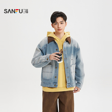 工装牛仔夹克外套男秋冬新款美式潮牌复古潮牌痞帅宽松水洗褂子男