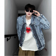 美式复古小众设计感牛仔外套男春秋季三道杠水洗高端帅气外穿夹克