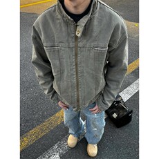 cleanfit垫肩立领牛仔外套男春秋潮牌痞帅宽松拉链设计感工装夹克