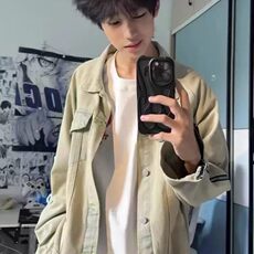 范哲贤 2025秋季新款复古老钱风翻领牛仔夹克工装上衣外套男潮牌