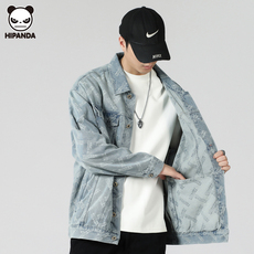 高端重磅牛仔外套男春秋新款宽松潮流设计感中式印花大码夹克上衣
