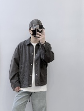 2026春季新款翻领复古水洗牛仔外套男夹克青年学生帅气派克服褂子