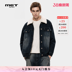 MET initaly美式复古毛绒领牛仔外套男女同款冬季宽松百搭夹克