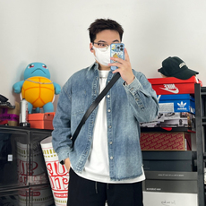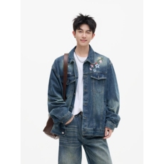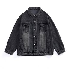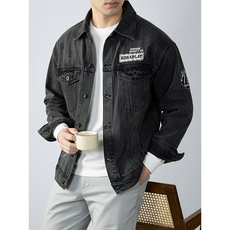 春季新款青少年时尚潮流牛仔外套背面大字母印花设计挺括有型夹克